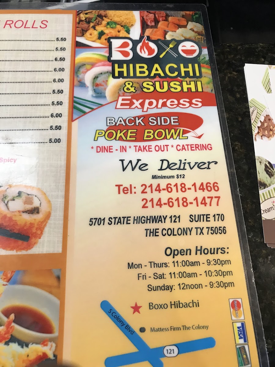 Welcome to BoXo Hibachi, a delightful culinary gem located at 5701 State Hwy 121 in The Colony, TX. Specializing in fresh and flavorful Japanese cuisine, BoXo offers a tempting menu that includes mouth-watering hibachi and sushi options.